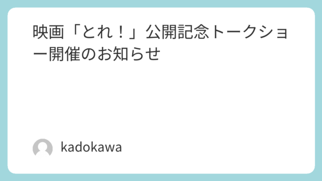 ニュース 映画「とれ!」公開記念トークショー開催のお知らせ